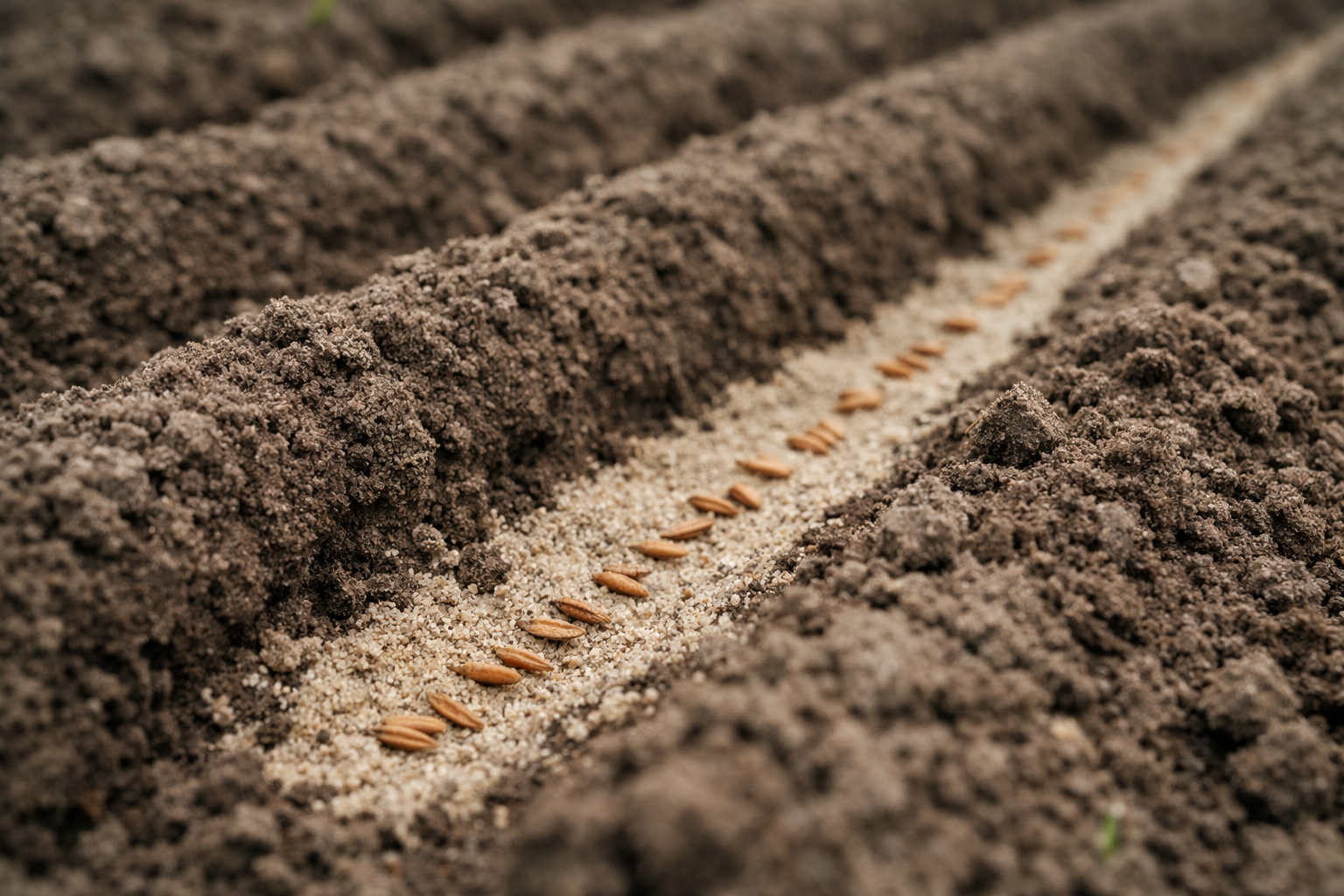 – Vyberajte len čerstvé semená z aktuálneho roka, pretože ich klíčivosť sa časom rýchlo znižuje. – Semená vopred umyte v teplej vode, aby ste čiastočne odstránili éterické oleje, ktoré bránia klíčeniu. – Vytvárajte brázdy v prísne rovnakej hĺbke a dno brázdy zhutnite nástrojovou frézou.