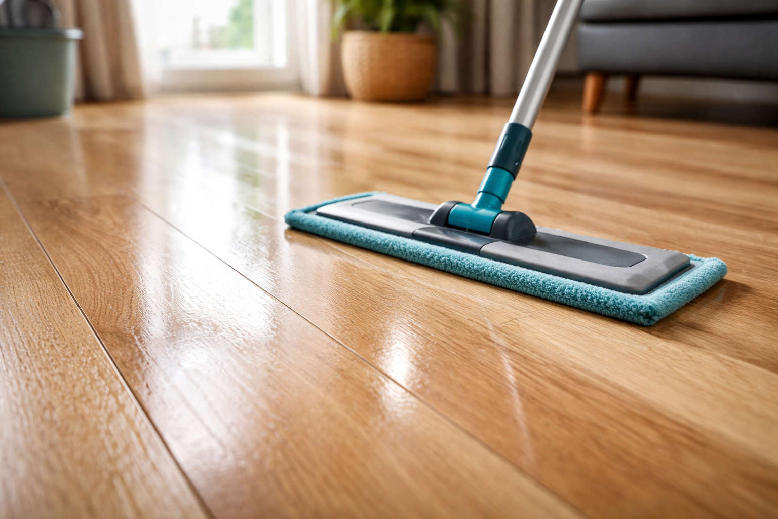 Tajomstvo: podlahu vždy čistite v smere laminátovej alebo parketovej podlahy, nie naprieč doskami, aby ste sa vyhli viditeľným stopám po žmolkoch a okrajoch handry.
