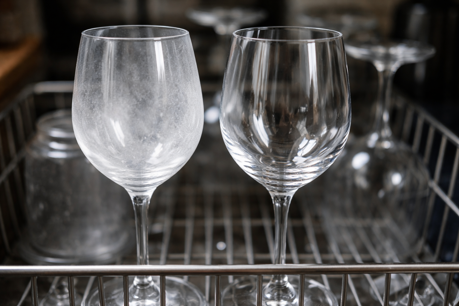 Problém najčastejšie spočíva v kvalite vody a nesprávnych pracích prostriedkoch. Okom nepostrehnuteľné minerálne usadeniny sa postupne hromadia na povrchu, čím sa sklo stáva matným.