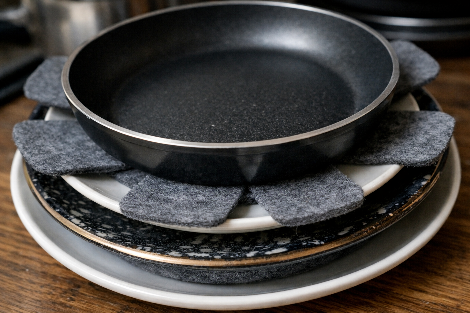 Správna organizácia priestoru a starostlivá starostlivosť o kuchynské vybavenie výrazne predlžuje dobu jeho dokonalej prevádzky. Používanie správneho chrániče na riad medzi jednotlivými položkami, zaručene udržíte hladký povrch a ochránite zraniteľnú keramiku pred prasknutím. Váš kuchynský arzenál zostane v perfektnom stave aj pri intenzívnom každodennom používaní.