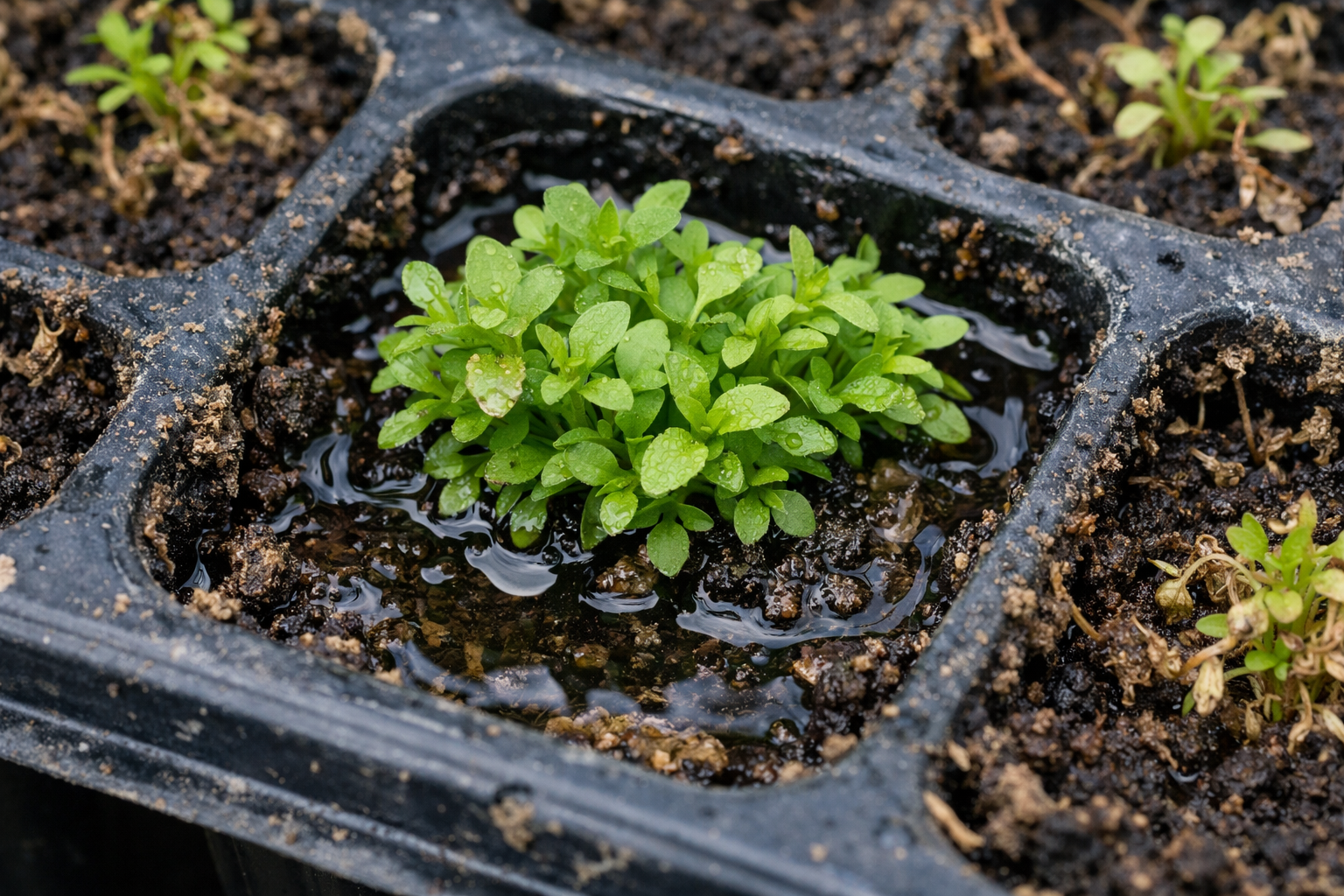 Pestovanie v kazetách je veľmi pohodlné, ale predstavuje skrytú hrozbu pre malosemenné plodiny. Objem pôdy v jednej bunke je minimálny, a preto vysychanie koreňového balu nastane už za niekoľko hodín. Jarné slnko cez okno zohrieva plast, vlhkosť sa rýchlo odparuje a tenké korene utrpia kritické poškodenie.