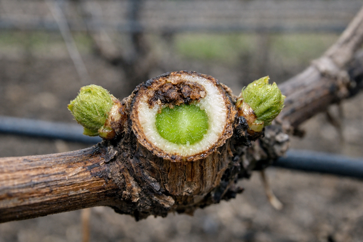 Jasne zelené tkanivo vo vnútri znamená, že púčik je živý a prinesie úrodu