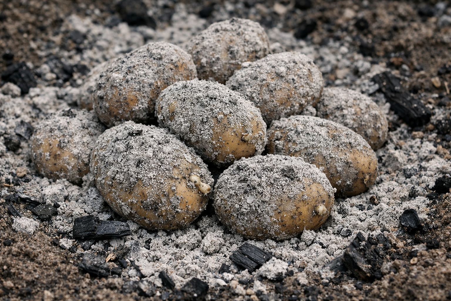Drevený popol obsahuje draslík, vápnik и fosfor v ľahko stráviteľnej forme. Keď hľuzu obalíme touto zlúčeninou, okamžite sa okolo nej vytvorí ochranná a výživná kapsula.