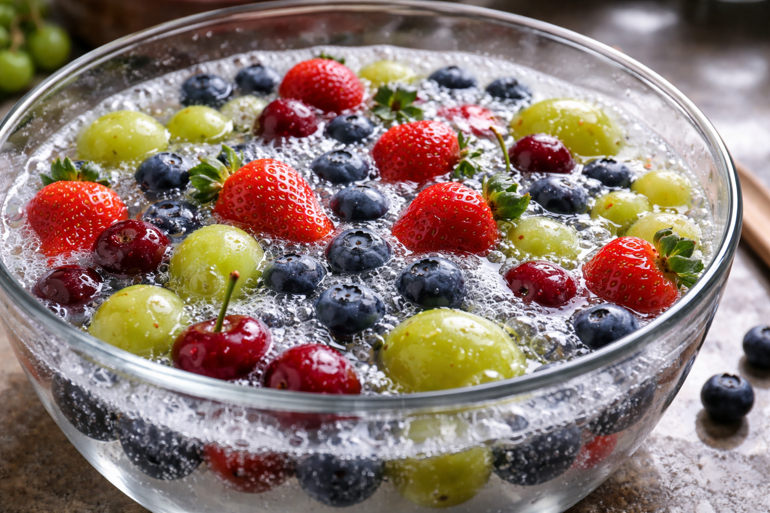Moje tajomstvo: do vody na namáčanie hrozna vždy pridajte kvapku čerstvej citrónovej šťavy, ktorá okamžite rozpustí lepkavý povlak. A pri bobuliach s poréznou štruktúrou používajte len ľadový kúpeľ, ktorý udrží dužinu dokonale pevnú a zabráni jej kysnutiu.