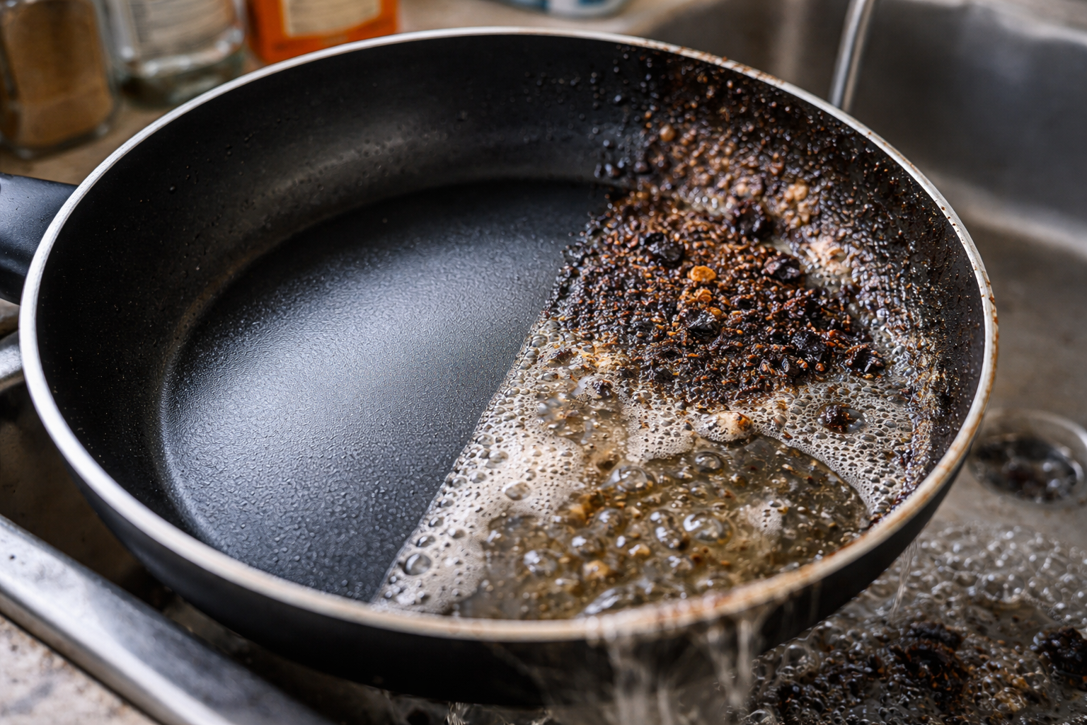 Všetci sme to zažili – rozptýlili sme sa pri písaní textovej správy a teraz je váš obľúbený riad pokrytý čiernymi sadzami, ktoré sa v ňom natrvalo usadili. Vaše ruky siahajú po tvrdej kovovej kefe alebo agresívnych chemikáliách, ale zastavte sa. Ukážem vám osvedčený trik, ktorý vášmu riadu navráti pôvodný vzhľad len za pár minút bez fyzickej námahy a bez poškodenia jemného povlaku.