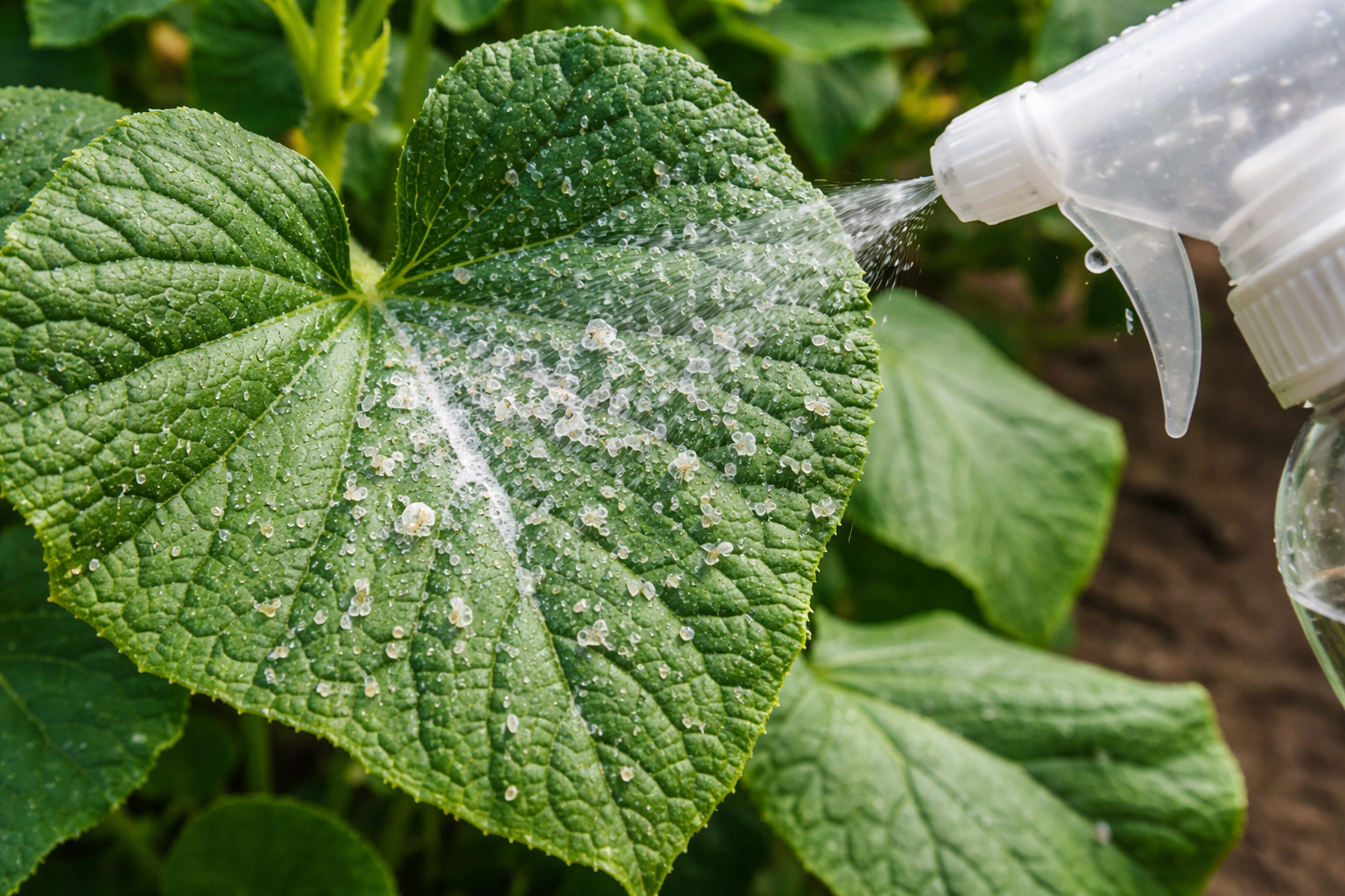 Hojný postrek spodnej časti listov roztokom zeleného draselného mydla