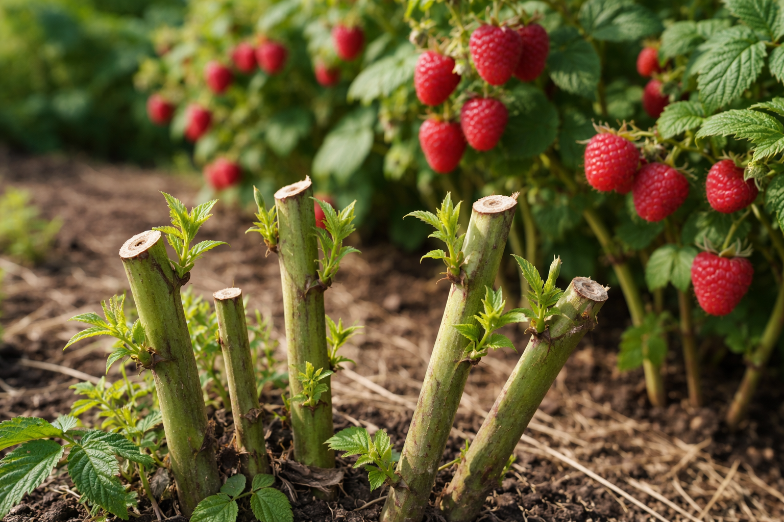 Remontantné odrody určené na jesenný zber sa odrezávajú úplne pod koreňom.