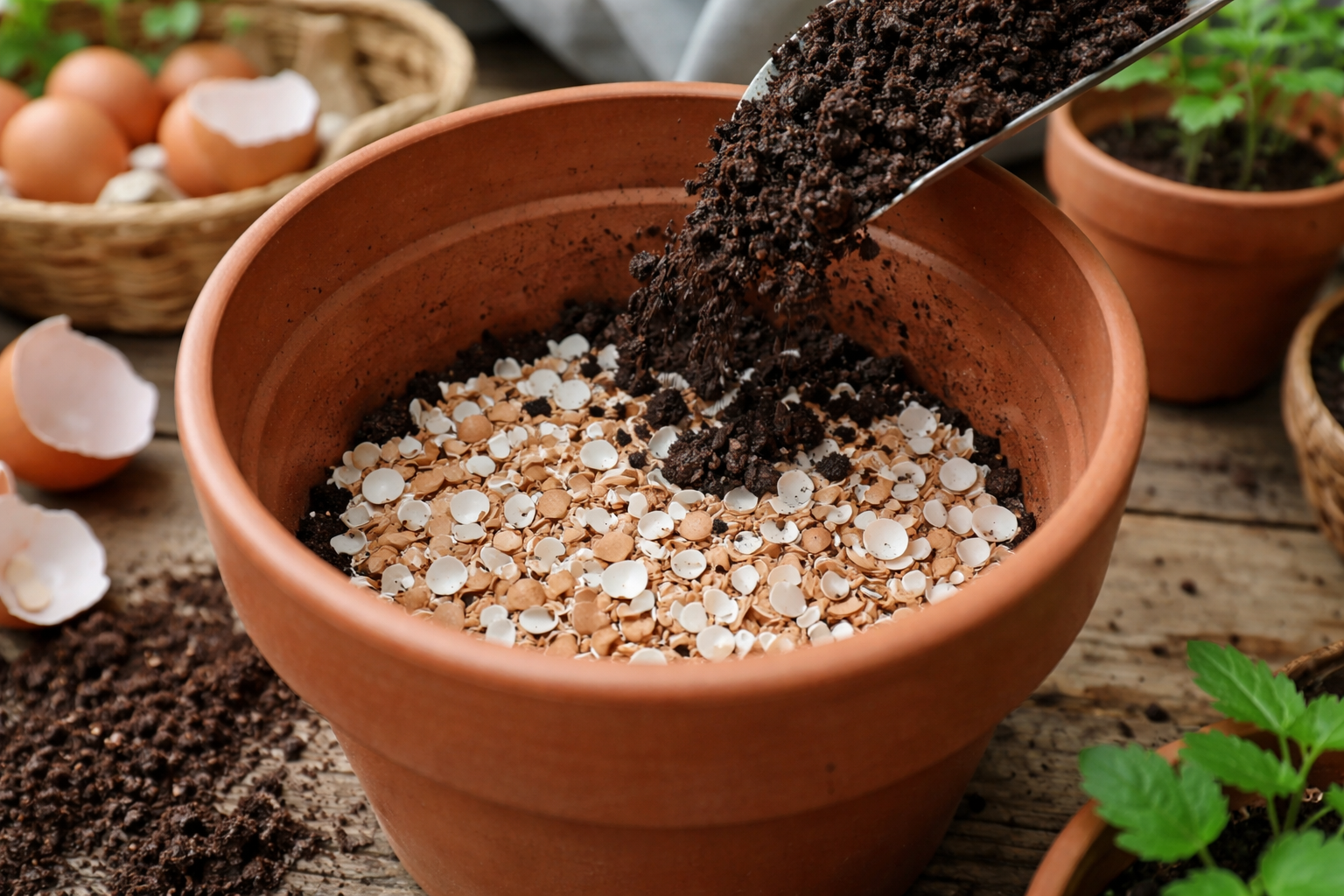 Kompetentná aplikácia zvyškov potravín výrazne zjednodušuje starostlivosť o výsadbu a znižuje riziko nebezpečných koreňových chorôb. Vďaka tejto osvedčenej metóde úplne odpadá potreba hľadať špecializované plnivá do záhradných nádob. Vopred pripravená zásoba krehkého materiálu zabezpečí správnu výmenu vzduchu a zdravý vývoj všetkých rastlín na vašom parapete.
