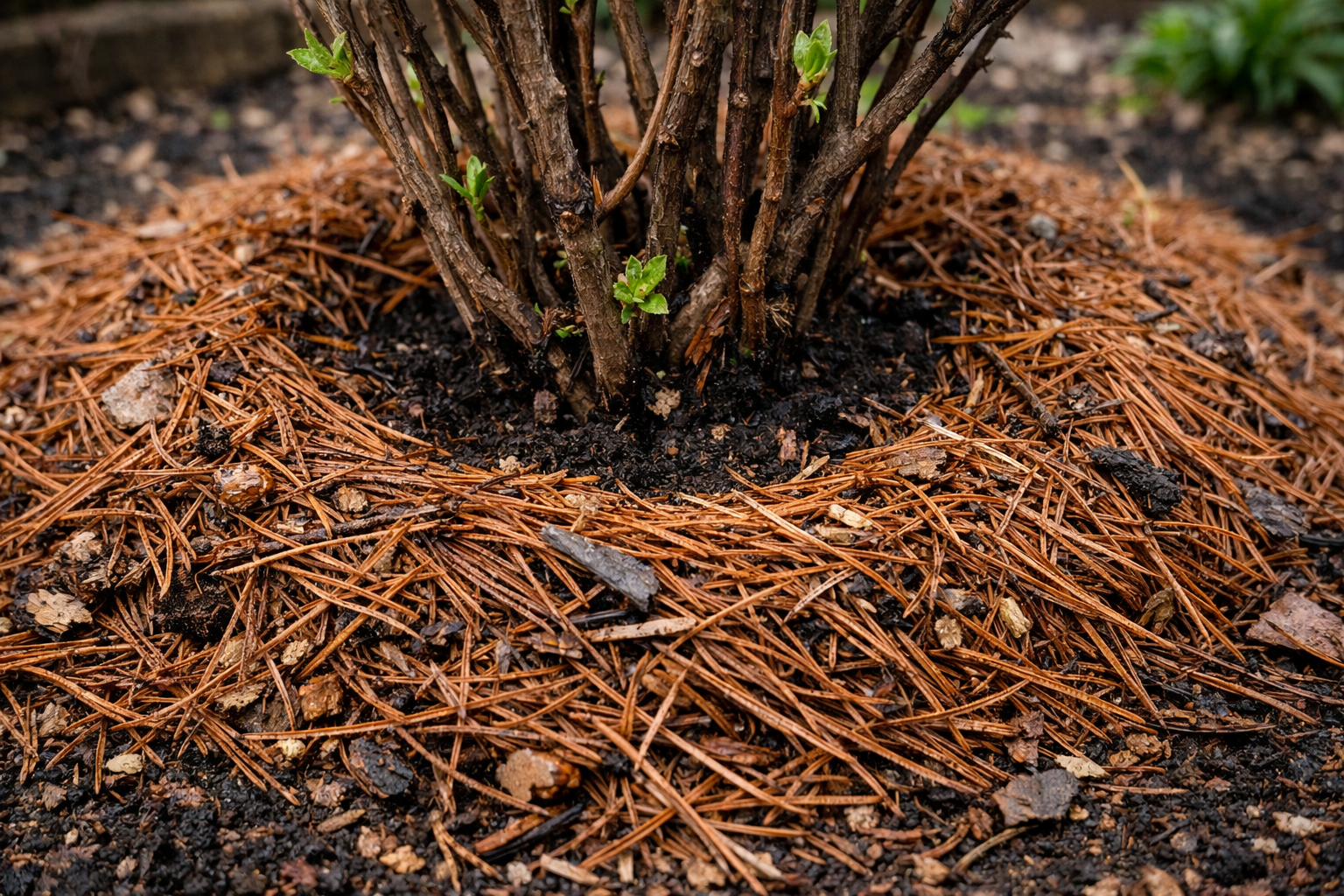 – Najskôr kríky výdatne zalejte čistou vodou – Rozložte vrstvu humusu alebo kompostu – Ihličie rovnomerne položte niekoľko centimetrov od kmeňa – Vankúš zľahka udupte rukami, aby ho nerozfúkal vietor