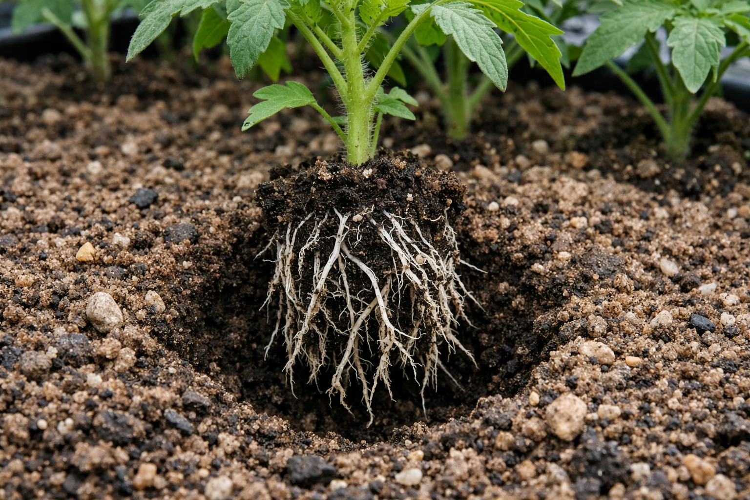 Tajomstvo spočíva v umelom strese: keď sa korene paradajok ocitnú v prázdnej pôde, sú nútené aktívne sa rozširovať a hľadať výživu, ktorá vytvára pevný základ pre budúcu úrodu.