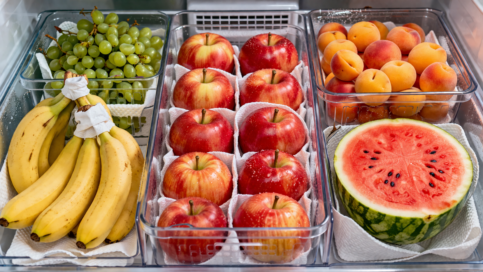 Prenášanie ovocia papierové uteráky aby rýchlo absorbovali vzniknutú kondenzáciu.