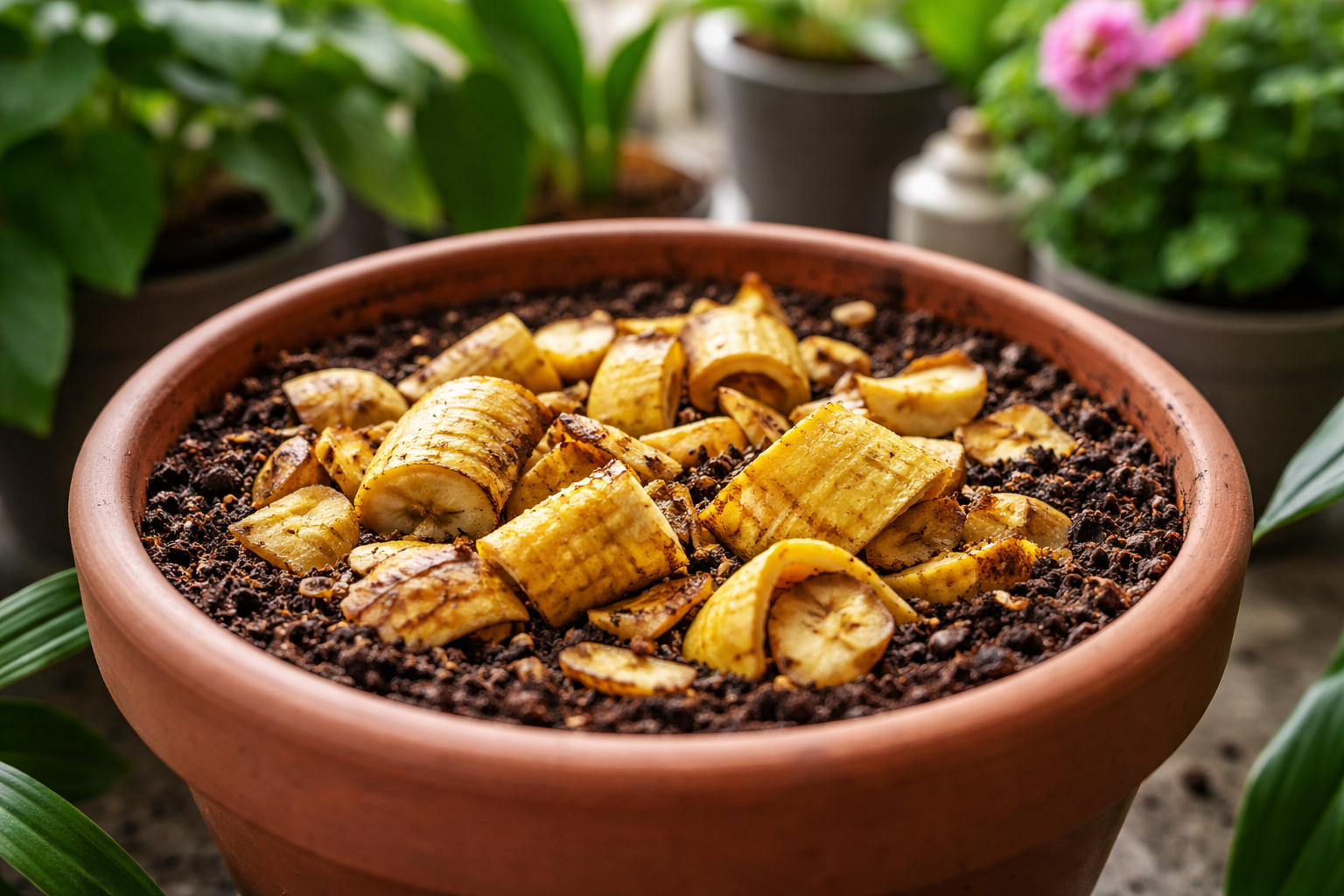 Spoločné banánová šupka – nie je len odpadom, ale koncentrátom živín potrebných pre zdravý koreňový systém a žiarivo sfarbené listy. Obsahuje mikroživinyktoré rastliny asimilujú oveľa ľahšie ako kupované pelety.