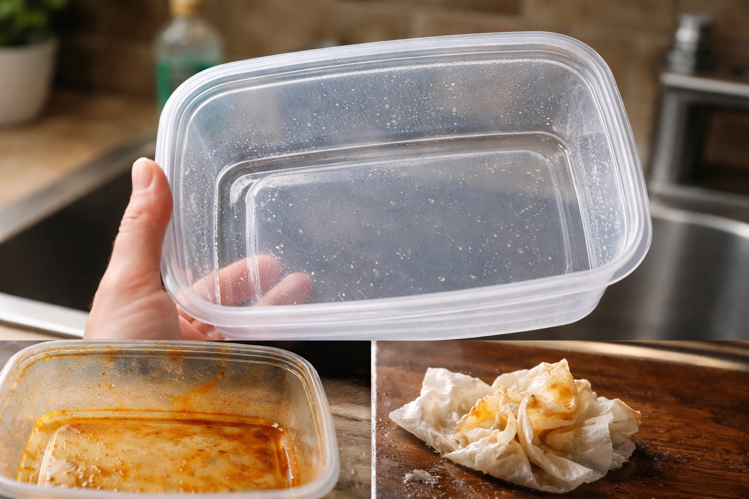 Súčasné potravinárske plasty má mikroskopické póry. Keď sa dostanú do kontaktu s teplým jedlom, rozšíria sa a doslova do seba absorbujú jedlo. pretrvávajúci tuk a farbivá. Keď sa pokúšame nádobu vyčistiť obyčajnou špongiou, len rozmazávame nečistoty na povrchu bez toho, aby sme prenikli do štruktúry materiálu.