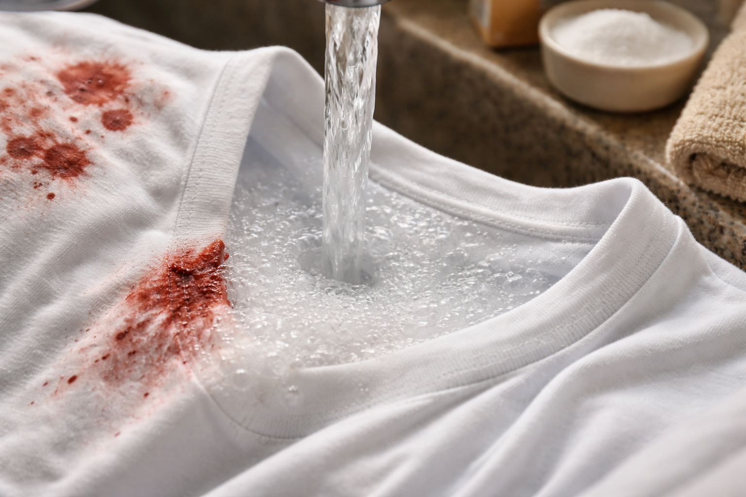 Hlavným pravidlom pri odstraňovaní krvi je používať len studenú vodu, pretože vysoká teplota trvalo zvára bielkoviny priamo vo vnútri vlákien a mení ich na nezmazateľné farbivo.