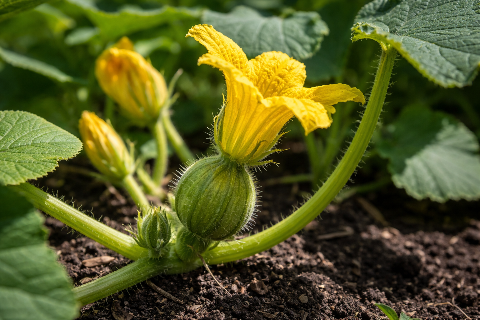 Samičí kvet má na báze nápadné vizuálne zhrubnutie v podobe malej okrúhlej tekvice.