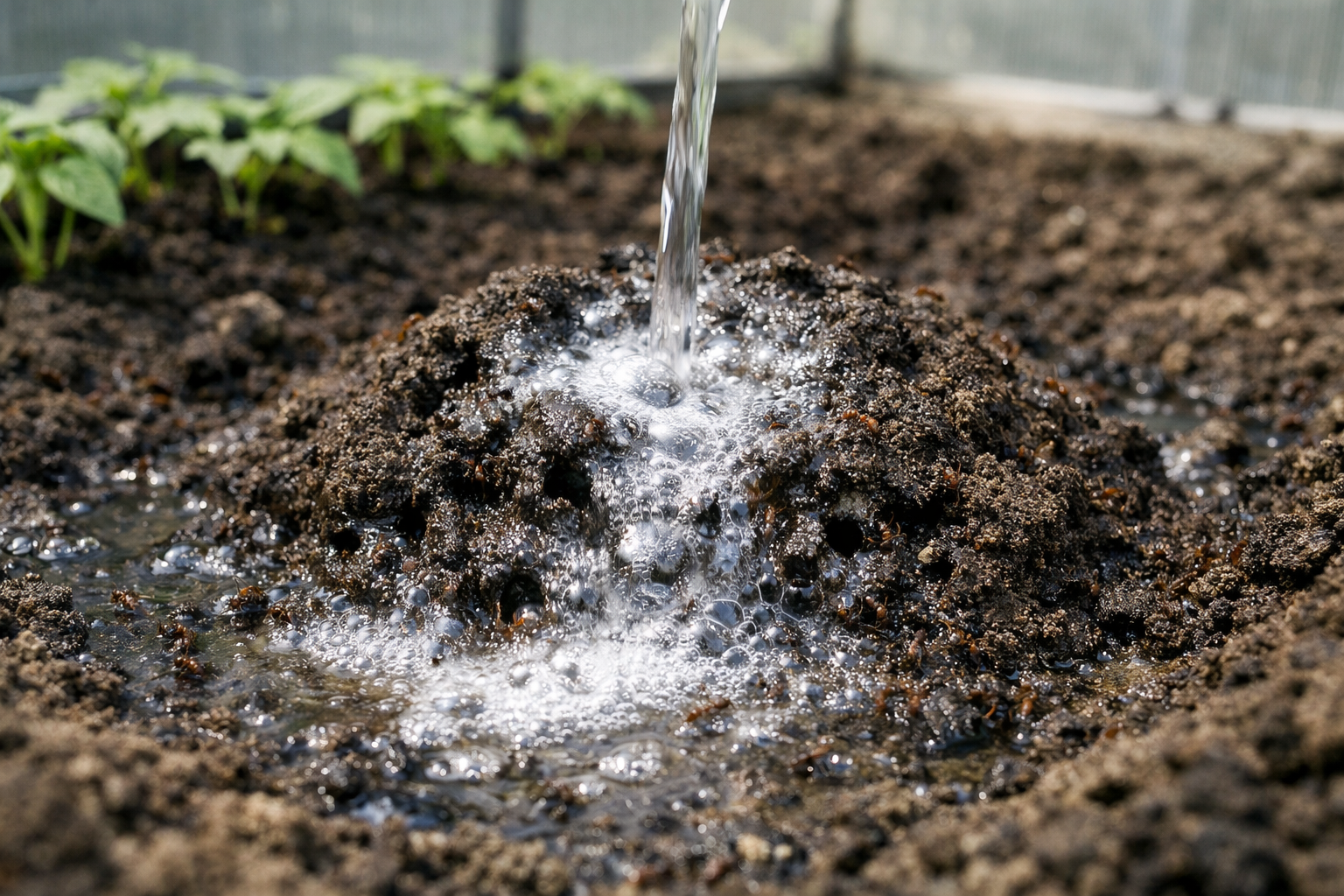 „Nikdy nelejte strmú vriacu vodu na mravenisko priamo pod kríky paradajok, pretože to okamžite uvarí korene rastlín a zabije sadenice.“