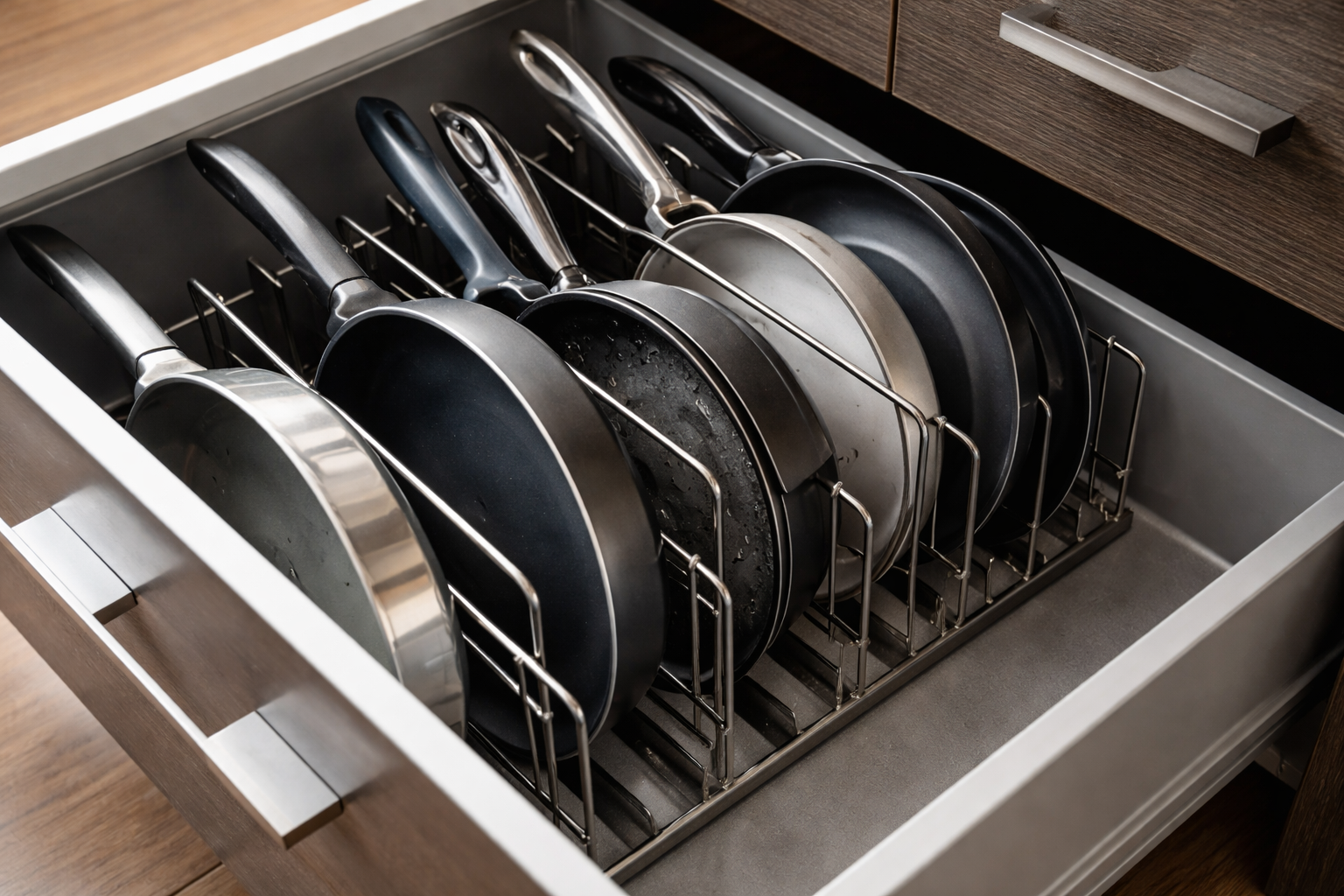 Zakaždým, keď sa snažíte vybrať z hromady tú správnu panvicu, vaša kuchyňa je plná hluku a na drahom riade zostávajú stopy po trení. Pomocou jednoduchých ergonomických zásad a osvedčených metód oddeľovania predmetov môžete udržiavať svoje skrinky v dokonalom poriadku a chrániť nepriľnavý povrch bez toho, aby ste museli kupovať zložité systémy.