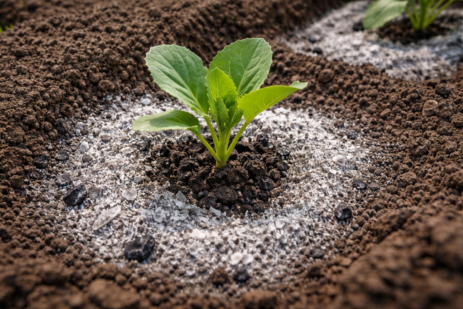 Odkysličenie záhonov drevný popol niekoľko týždňov pred presunom sadeníc.