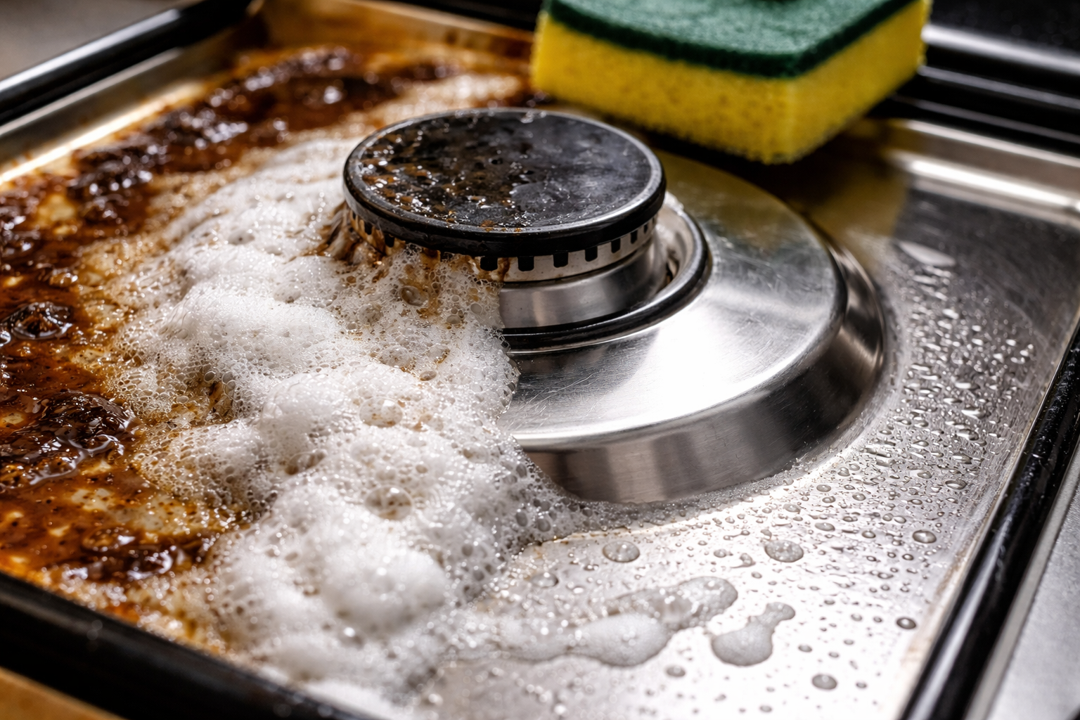 Husté sadze z plechov na pečenie a stien rúry odstráňte pomocou hustej pasty.