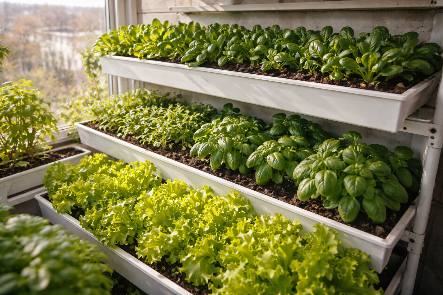 Mnohí obyvatelia miest snívajú o čerstvej zeleni priamo za oknom, ale stretávajú sa s podlhovastými bledými výhonkami, ktoré rýchlo uschnú. Na obyčajnom balkóne je možné získať hustú úrodu skoro na jar, ak použijete metódu viacúrovňového výsevu a správneho otužovania pri teplote.