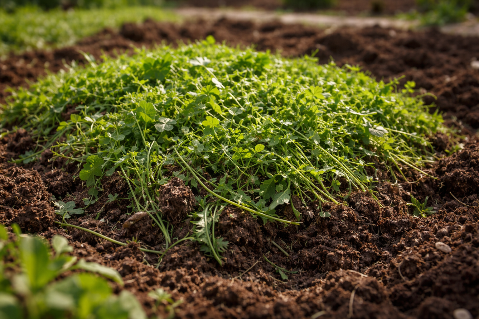 Rastúce rastliny nikdy nezakopávajte hlboko do zeme. Ja ich len zastrihávam plochou kosačkou do hĺbky niekoľkých centimetrov a nechávam ich na záhone ako mulč – tým sa spustí prirodzený proces fermentácie.