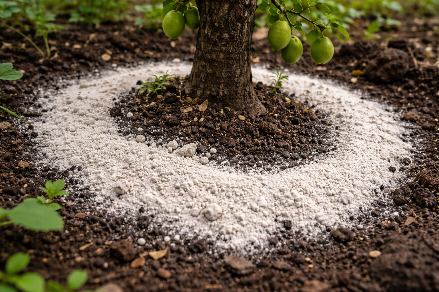 Tajomná nuansa spočíva v správnom rozmiestnení prášku na mieste. Prípravok nikdy nesypte pri kmeni, vždy ho rovnomerne rozmiestnite po celom obvode korunového výbežku, kde sa nachádzajú najaktívnejšie sacie korene.