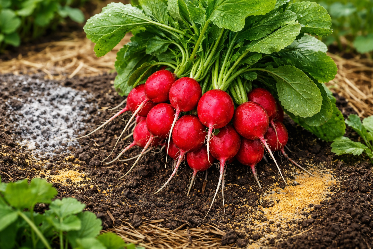Doplňte rozstupy medzi riadkami drevný jaseň na jemnú dezoxidáciu pôdy a dodanie výživy draslíkom
