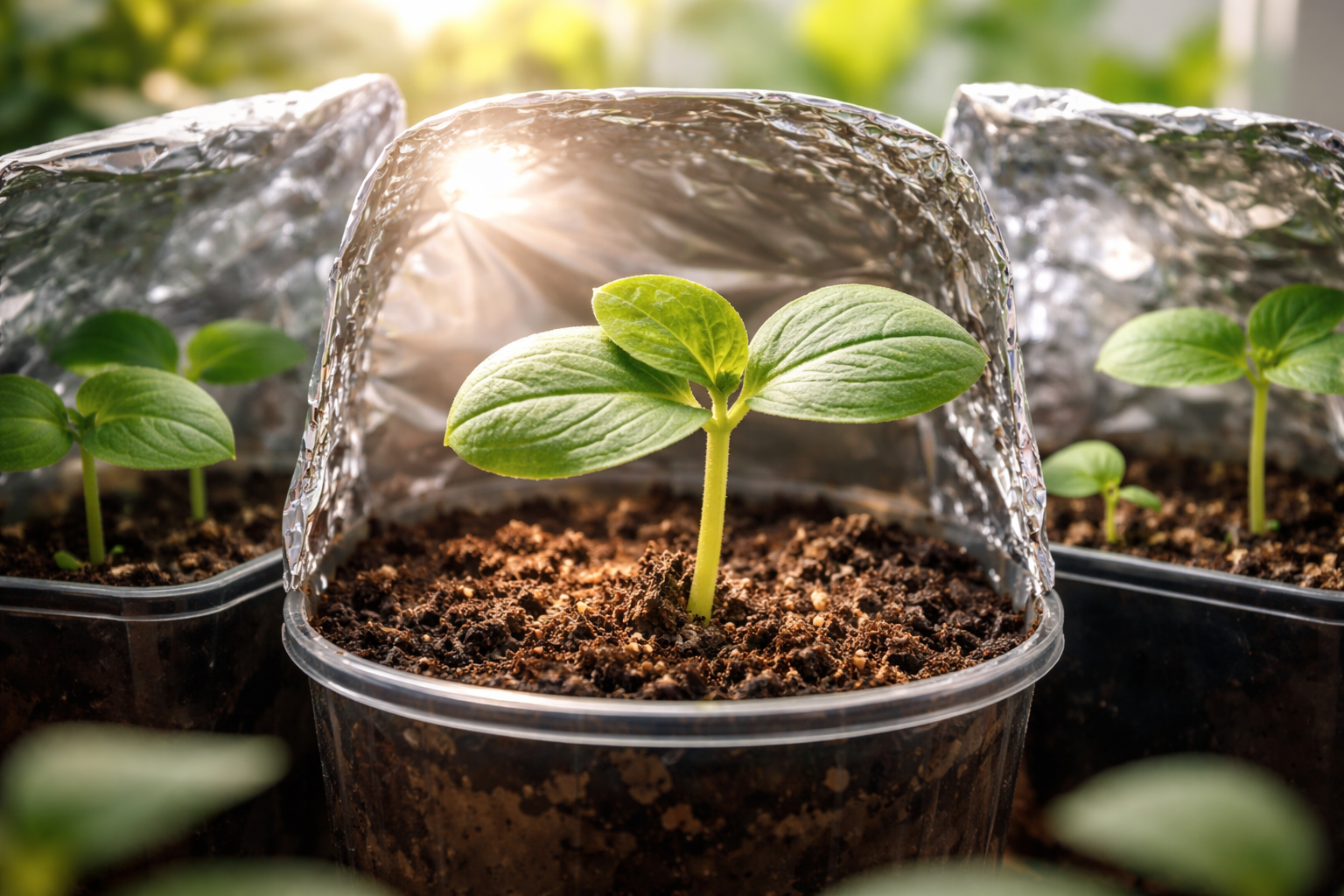 Matná strana potravinárskej fólie funguje najlepšie, pretože vytvára mäkké rozptýlené svetlo bez rizika spálenia zelene vplyvom teploty.