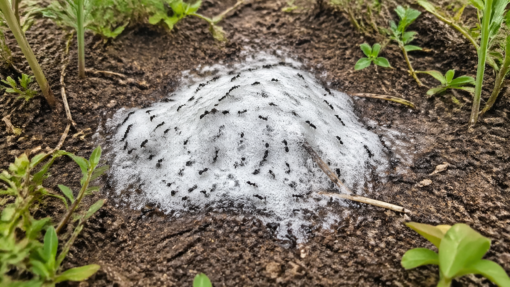 Prudká chemická reakcia môže zlikvidovať celé mravenisko, ak sa roztok dostane hlboko do podzemných chodieb.