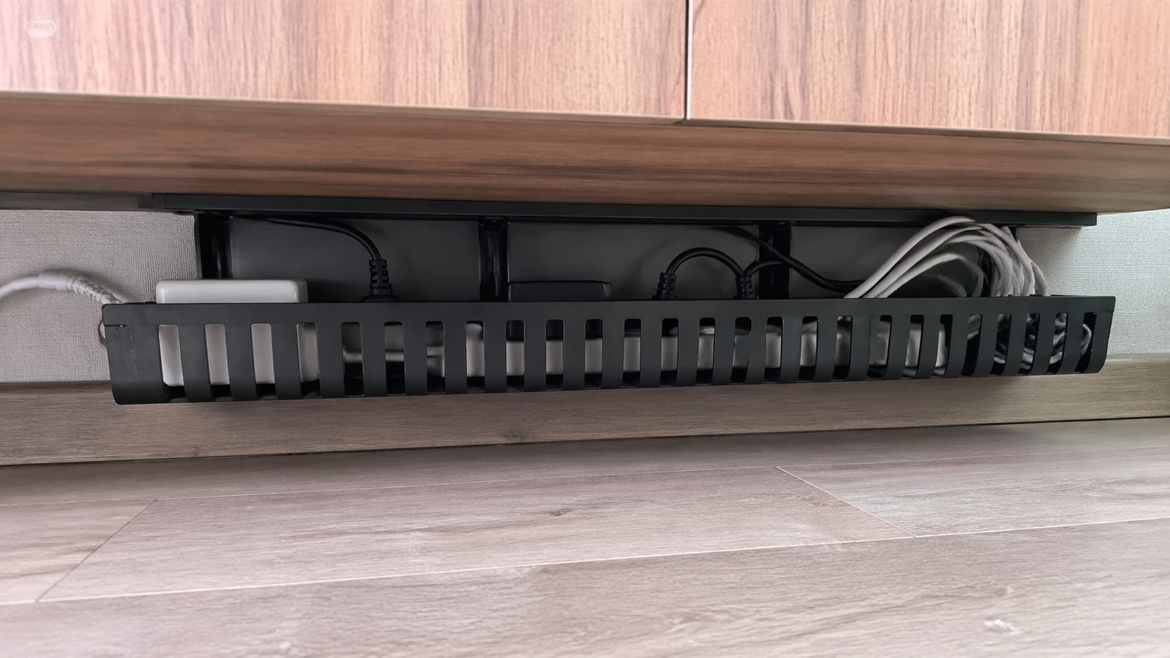 Pod dosku stola upevnite špeciálny kovový kôš, kde bude masívny napájací zdroj a celá prebytočná dĺžka úhľadne schovaná.