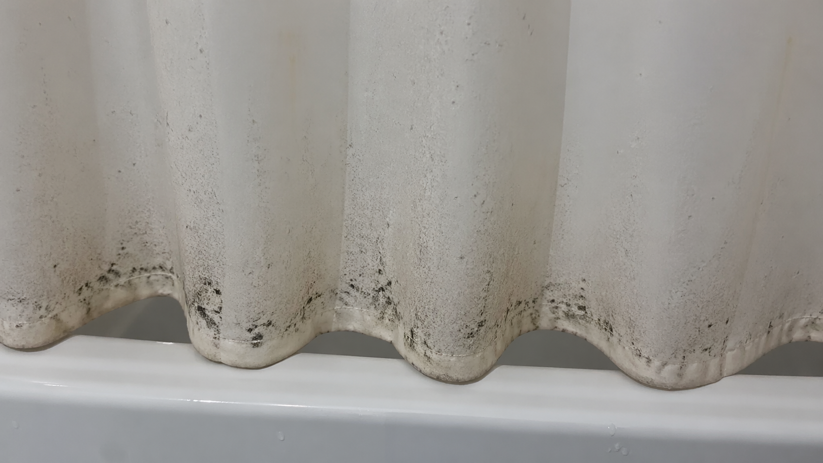 Hromadenie neviditeľných zvyškov ošetrujúcej kozmetiky v spodnej časti závesu.